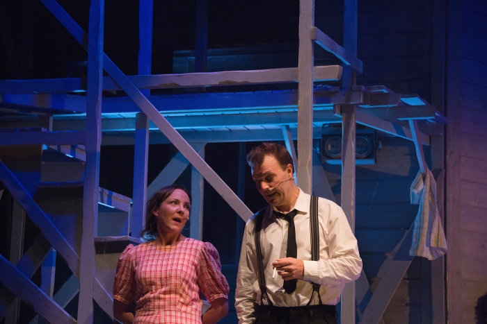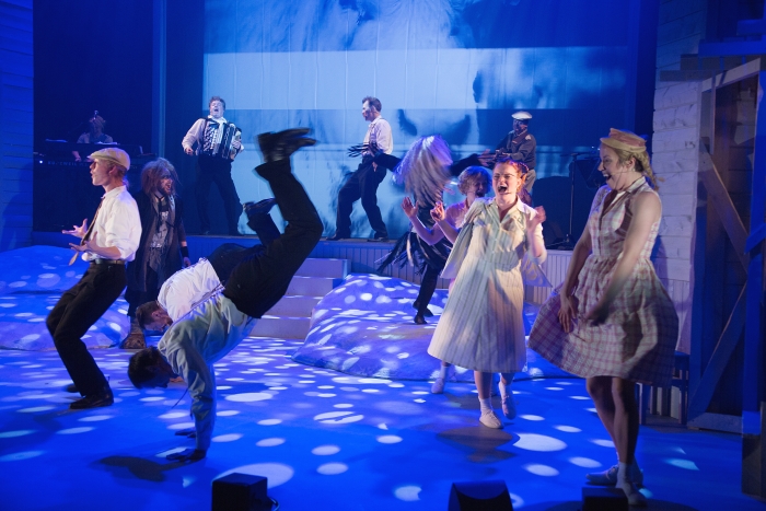 Kun sali alkoi täyttyä, näyttelijät verryttelivät vielä verkkareissa lavalla ja huikkailivat tervehdyksiä tutuilleen. Tämä viritti katsojat odottamaan jotain muuta kuin klassista kansalliskirjailijasaagaa. Ja sitä totisesti saimme.