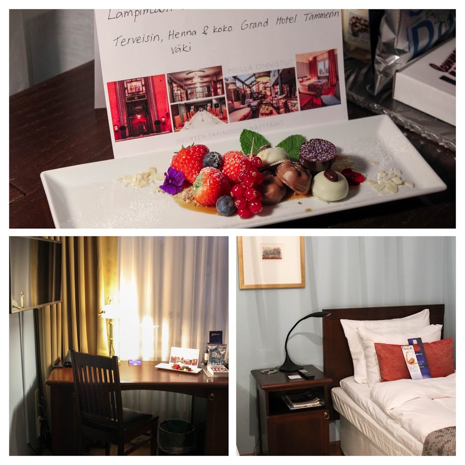 Majoituksemme oli järjestetty Radisson Blu -ketjuun kuuluvaan Grand Hotel Tammeriin. Testasin viime jouluna Tammerin aamupalan ja maistiaisia juhlamenusta. En kuitenkaan ole koskaan yöpynyt tässä komeassa rakennuksessa, joka istui hyvin päivämme teemaan.