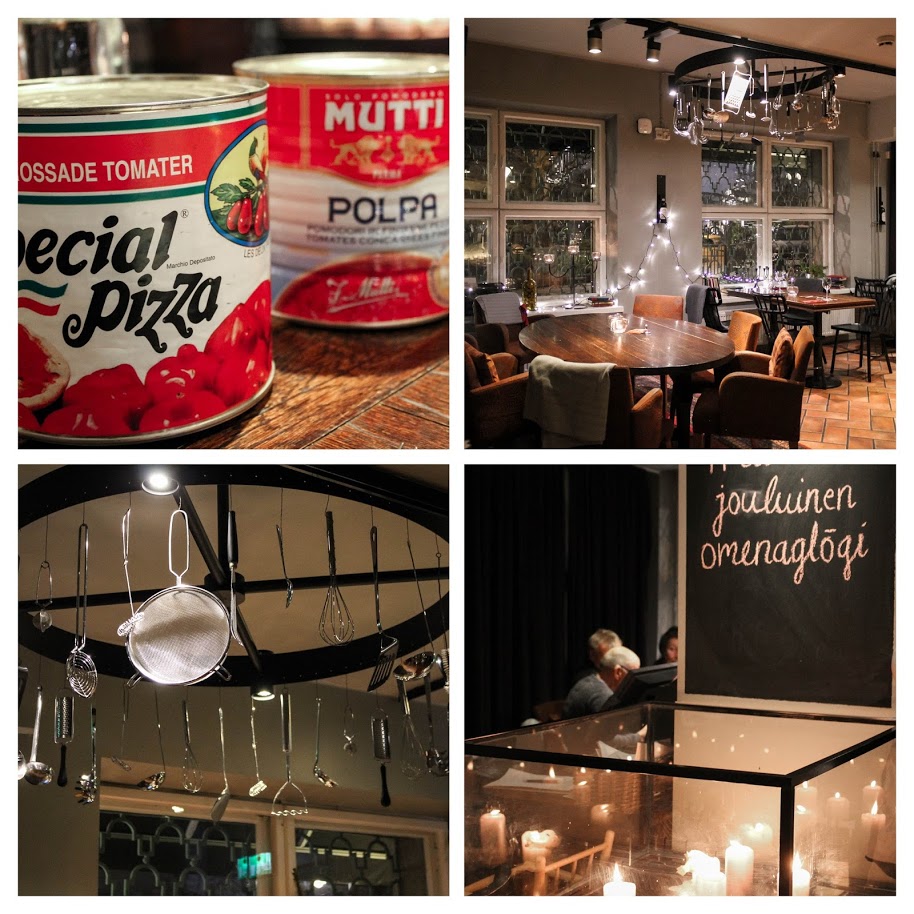 Vain jälkkäriannos oli tarpeisiimme liian iso. Puolet suklaakakusta riittäisi hyvin. Viinilistalla on pelkkiä italialaisia viinejä, tästä suuri plussa. Aperitiiviglögissä oli ilahduttavan reilusti konjakkia, ja oli mukava juoda välillä vaaleaa, vähemmän makeaa talvijuomaa.
