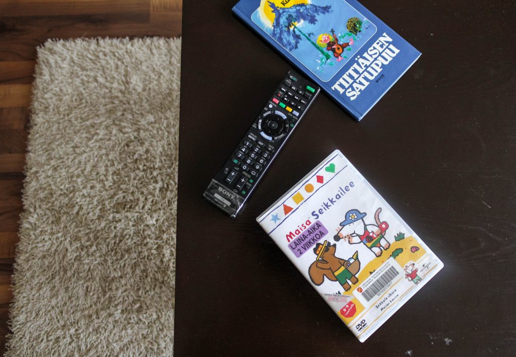 Mitä näet yllä olevassa kuvassa? Arvaan vastauksen: no siinä on olkkari. Sohvapöytä, jolla on vähän pölyä ja vihreä muovimuki. Koira ja vauva ovat aikoinaan nakerrelleet pöytälevyä ja jalkoja. Lattialla on koiran tai lapsen lelukoppa, taustalla näkyy televisio, kaiuttimet ja pala valkoista seinää. Menikö oikein?
