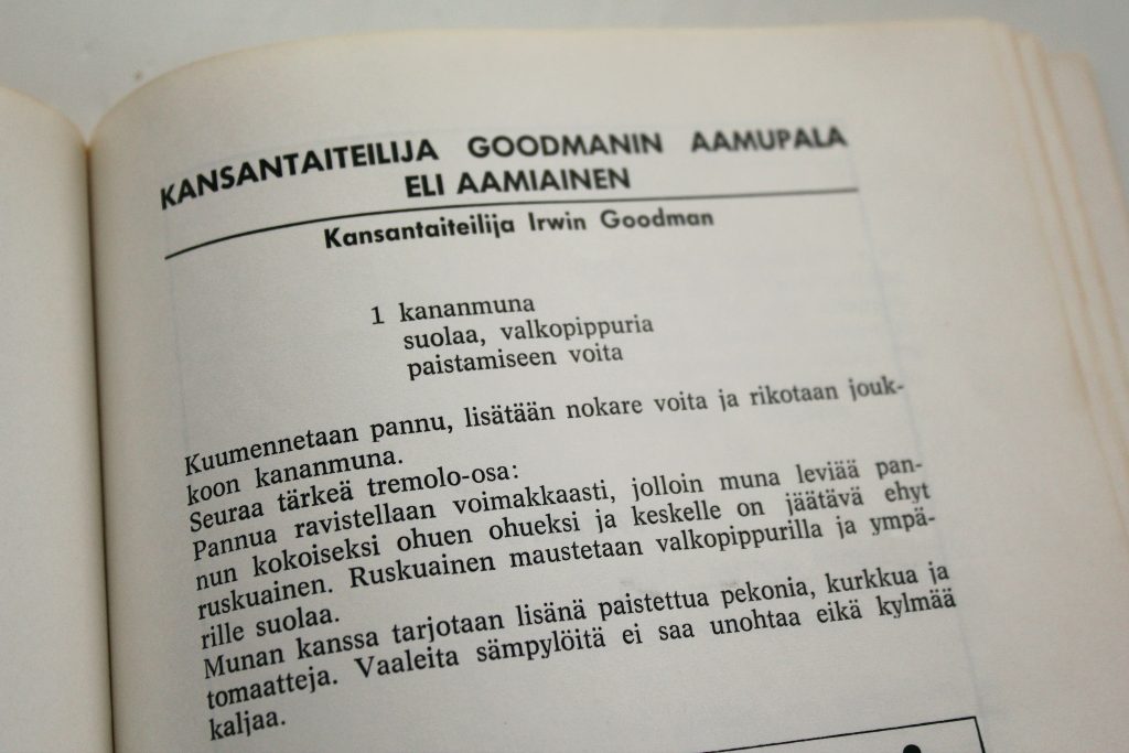 Kirjaan on koottu reseptejä 70-luvun tunnetuilta tamperelaisilta. Mukana ovat niin kansanmuusikko Irwin, kirjailijat Väinö Linna ja Kalle Päätalo kuin teatteridiiva Sylvi Salonen.
