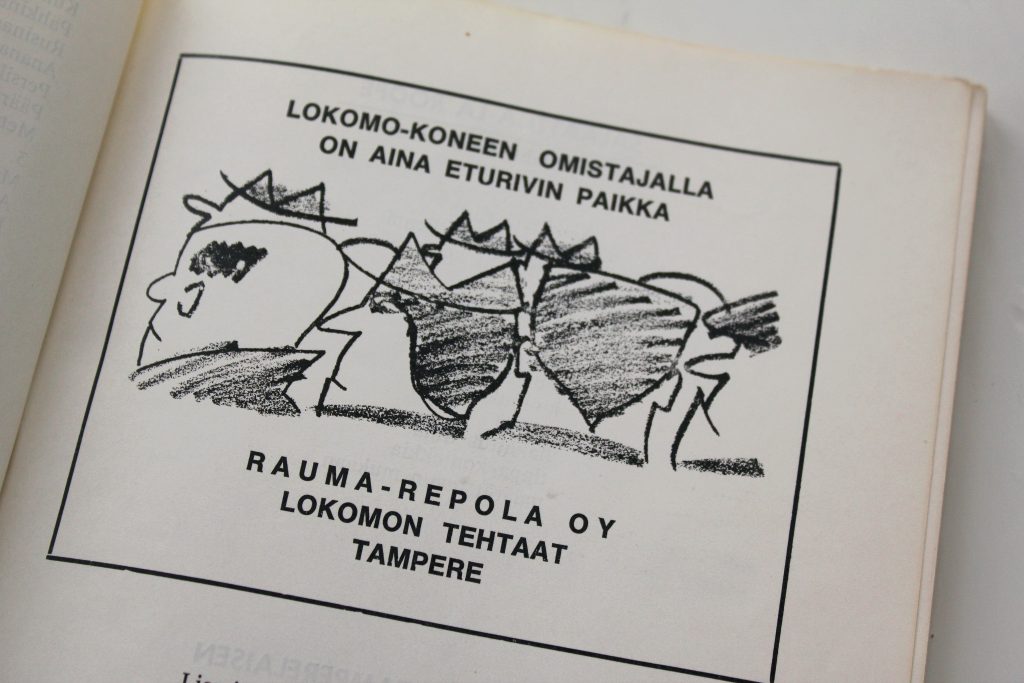 Myös tämä Lokomon mainos on varsin puhutteleva. Sen on piirtänyt joko aikaansa edellä ollut taiteilija tai toimarin tytär, joka on tienannut Lokomolla kesätyörahojaan ja haaveillut mainostoimistourasta.