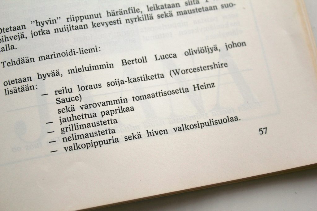Valkopippuria, Worchestershire-kastiketta ja voita pursuilevat reseptit lumosivat minut niin syvästi, että kirja on unohtunut puoleksi vuodeksi kirjahyllyymme. Päätin palauttaa sen vihdoinkin, mutta ennen sitä haluan jakaa tämän kulinaristisen aarteen kanssanne. Reseptit ja kirjan kuvitus tarjoavat yhtä, krhm, maukkaita hetkiä kuin 70-luvun Menu-lehdet, joita esittelin taannoin.