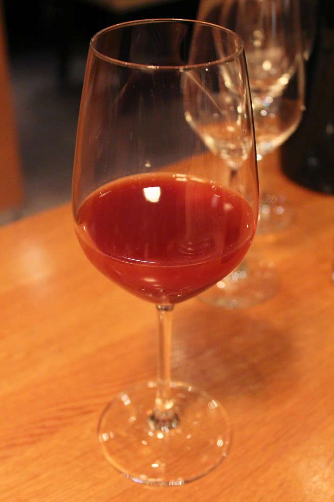 Risoton kanssa tarjoiltu pienen tilan piemontelaisviini oli aika ihana. Tuoksussa ja maussa oli tammea ja karhunvatukkaa, mutta viini ei ollut liian jynkky. Kuka sanoi, että punaviiniä ei muka voi juoda kalan ja äyriäisten kanssa? Alkoholiton juoma sen sijaan oli hiukkasen tylsä, Pellegrinon kivennäisvettä limellä maustettuna.
