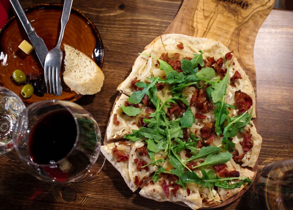 Viinin lisäksi Winebridgestä saa ruokaa. Menussa on sekä pikkupaloja, joita voi napostella lasillisen kanssa, että kunnon pääruokia ja jälkkäreitä.