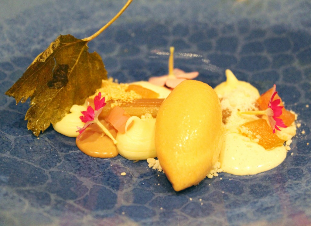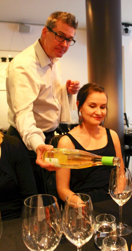 Ruoan kanssa tarjottiin Georg Breurin Riesling, joka oli todella kuiva. Kun annoksen päälle puristi suolasitruunaa, tuntui siltä, kun olisi hörppäissyt kulauksen merivettä. Todella rohkeasti hapan ja kulmikas annos, jota vaahtomainen kastike pehmensi upeasti. Tämä jäi mahtavalla tavalla makumuistiin, vaikka annos kaipasi vielä viilausta. Esimerkiksi Annan parsoissa oli niin paljon puumaista päätä, että leikkaaminen oli mahdotonta. Viini oli piste iin päälle ja osoitti, että ravintola ei kosiskele asiakkaitaan keskitien ratkaisuilla.