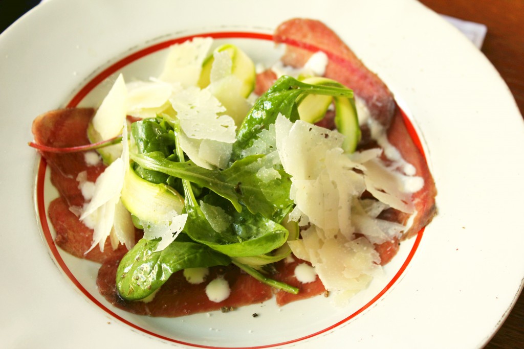 Tuulensuussakin tarjottiin parsakeittoa. Pohjaliemi oli keitetty sekä vihreästä että valkoisesta parsasta, eikä joukossa ole muita maustekasviksia, kuten sipulia. Maistelimme myös peuracarpacciota pecorinojuuston kera sekä parsapiirakkaa. Porukan suosikiksi nousi konstailematon carpaccio. Pidin myös piirakasta, mutta olisin himmannut suolan määrää. Myös keitto oli todella suolainen, ja sen liemevä koostumus hävisi väkisinkin Näsinneulan kuohkeudelle. Mutta kuten sanottu: testijärjestys oli vähän hassu. Pubiruoka on pubiruokaa, ja siinä saa olla enemmän rasvaa ja suolaa.