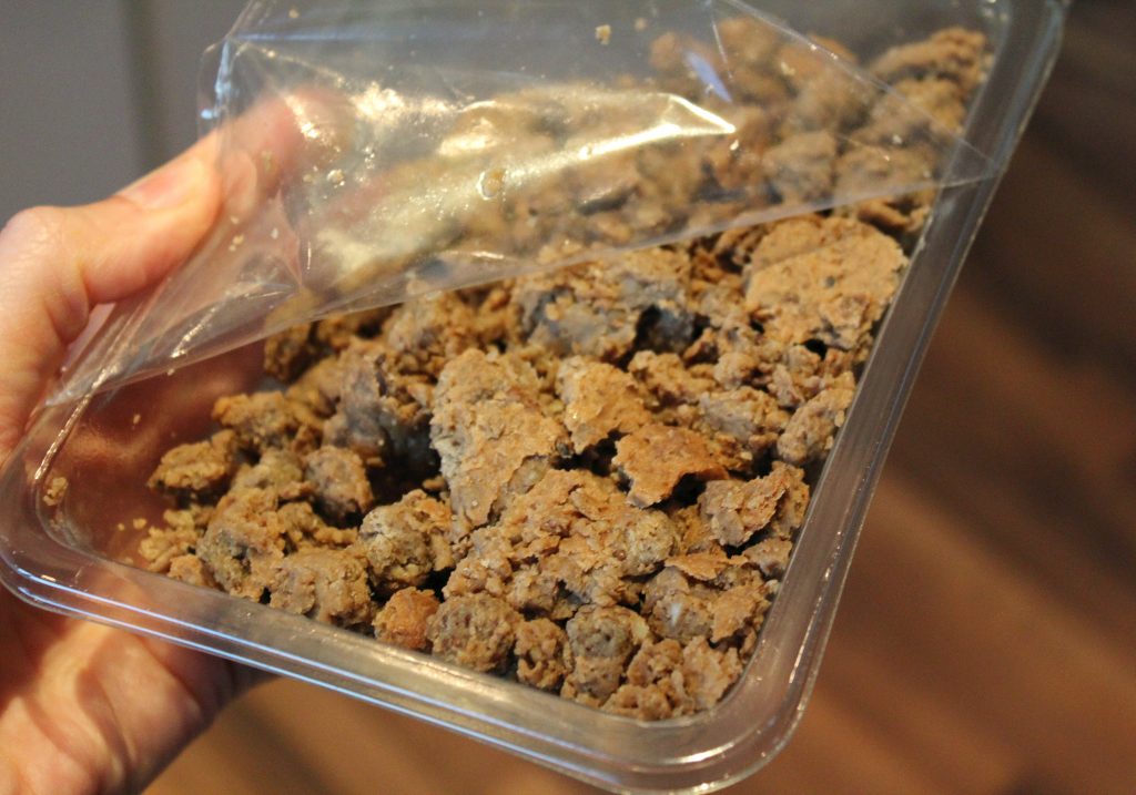 Härkis on kuin valmiiksi paistettua jauhelihaa, joten lisäsin sen kastikkeeseen lopuksi sellaisenaan. Se hajosi hieman enemmän kuin jauheliha. Suutuntumassa ja maussa ei kuitenkaan ollut dramaattista eroa. Parasta oli se, että härkis ei jäänyt kovaksi muruksi – toisin kuin soijarouhe, ellei sitä turvota kunnolla vedessä. Härkis on eräänlainen pikaeines, joka helpottaa ja nopeuttaa kasvisruoan kokkaamista. Kokemattoman sekasyöjän ei tarvitse pelätä mokaavansa. Sen kuin kippaat härkiksen ruokaan samalla tavalla kuin paistetun jauhelihan.
