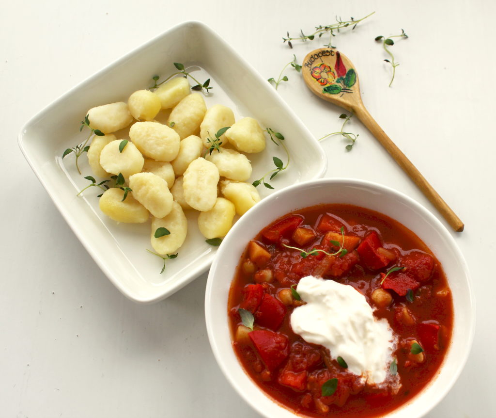 Lopuksi vielä tärkeä vinkki. Gnoccheja ei missään nimessä kannata keittää keiton joukossa, vaan erikseen omassa vedessään. Palleroista irtoaa keittämisen aikana aika paljon tärkkelysvaahtoa, joka voi saostaa keiton. Gulassin koostumus pysyy miellyttävämpänä ja gnocchit kauniin vaaleina, kun keität gnocchit erikseen ja lisäät ne keittoon vasta tarjoiluvaiheessa.