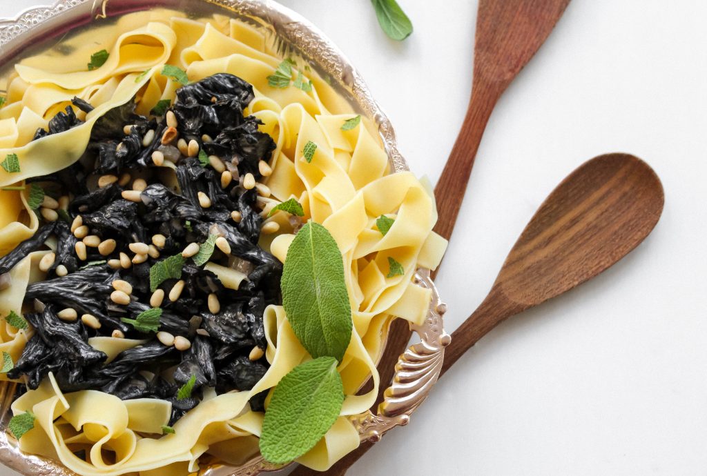 Supppiksen ja mustatorvisienet kaltaiset tummat sienet kestävät tuhtejakin makuja. Tämä sitruunalla ja chilillä maustettu sienipasta sopii niille, joilla kerma ja sipuli tulevat korvista ulos. Voit lisätä joukkoon kovaa juustoa tai jättää pastan vegaaniseksi.