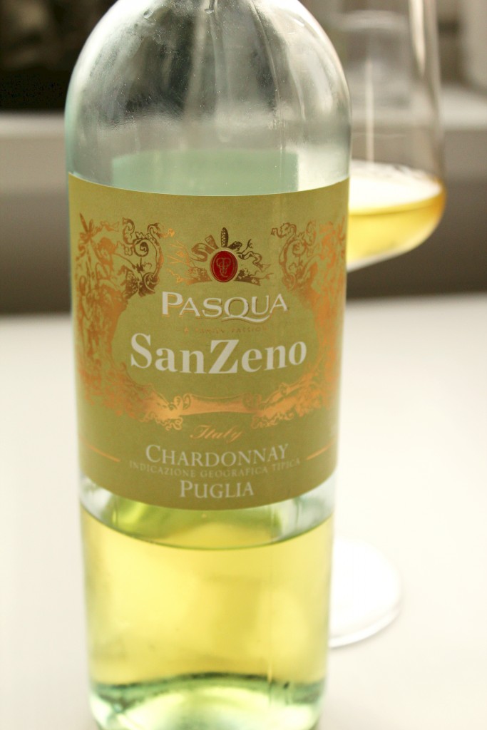 Löysimme viinikaapin uumenista Pasqua Sanzeno Chardonnayn, joka taisi tulla meille joihinkin nyyttäreihin. Alkossa reilut 7 euroa kustantavan pullo ei ole mitään persoonallisuuden ilotulitusta. Se ajaa kuitenkin asemansa ruoanlaittoviininä, jota voi myös mainiosti siemailla.