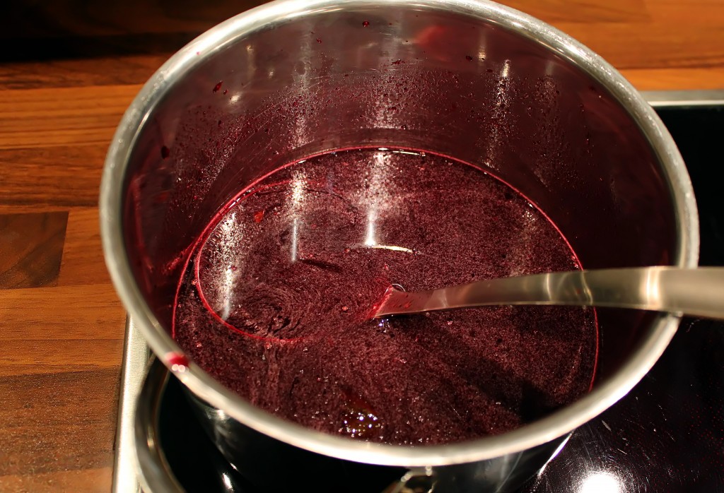 - Kuumenna seosta hieman, jotta sokeri liukenee nesteen joukkoon. Älä missään nimessä keitä viiniä, sillä muuten alkoholi haihtuu pois (HERRAJJUMALA!!!!!). Lämmittele viiniä maltillisesti suurin piirtein lieden 2-teholla ja sekoita koko ajan. Nosta viini jäähtymään heti, kun sokeri on liuennut joukkoon.