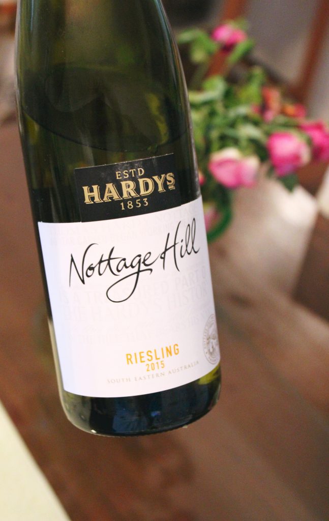 Niin ja se Riesling, jota tinttasimme. Sain Hardy´sin maahantuojalta laatikollisen ilmaisia näyteviinejä. Nyt maisteluvuorossa oli puolikuiva Nottage Hill Riesling (11,90 e). Tämän Rieslingin väri oli hyvin hento. Kuvastakin huomaa, että se on lähes vihertävä. Tuoksussa ei ole ihan petrolia, mutta hippunen vahaa kuitenkin. Hedelmäistä ja sitruksista, menee sarjaamme kelpo seurusteluviini.