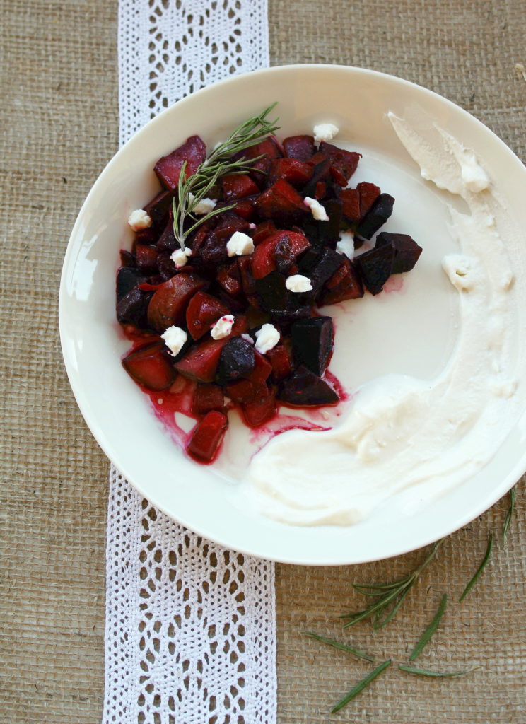 Toinen ihanuus on punajuuri-ohrasalaatti, joka höystetään vuohenjuustolla ja paahdetuilla pähkinöillä. Red love!