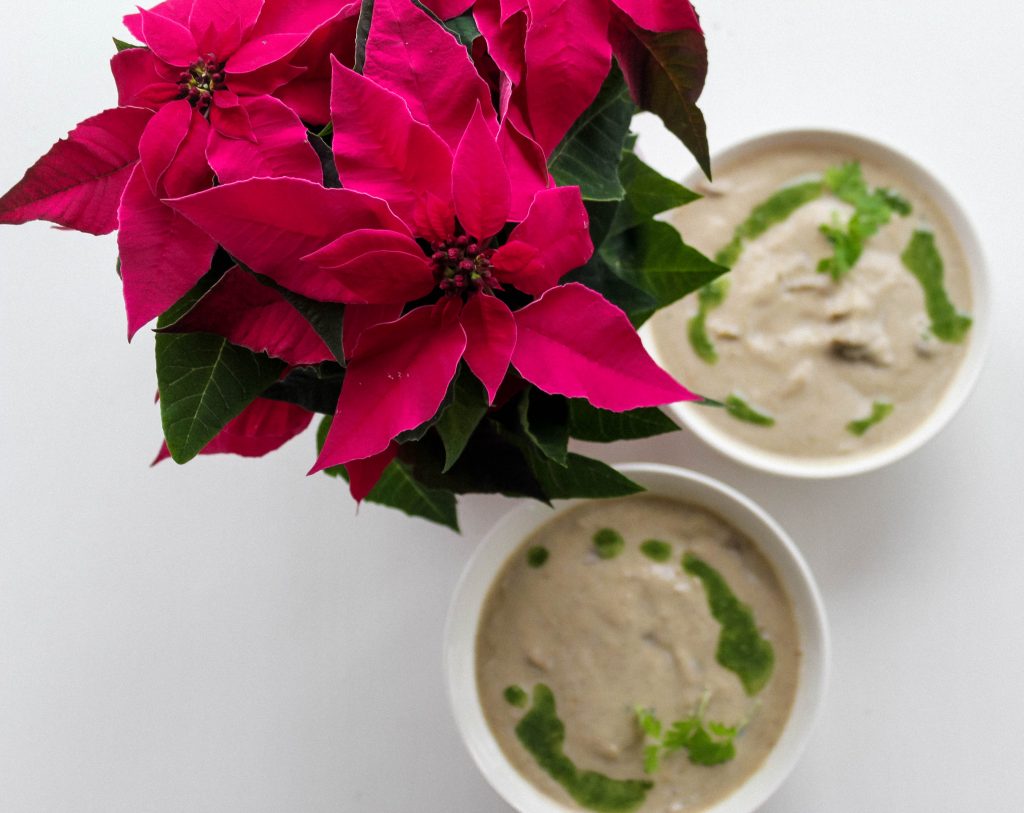 - Lisää joukkoon sienet. Jos sieniä on reilusti, voit säästää vajaan puolet sattumiksi. Soseuta keitto sauvasekoittimella. Lisää lopuksi joukkoon kerma ja surauta sekoittimella vielä pari kertaa, niin saat keittoon vaahtomaisen koostumuksen. Jos säästit osan sienistä, lisää ne keittoon lopuksi keittoon.