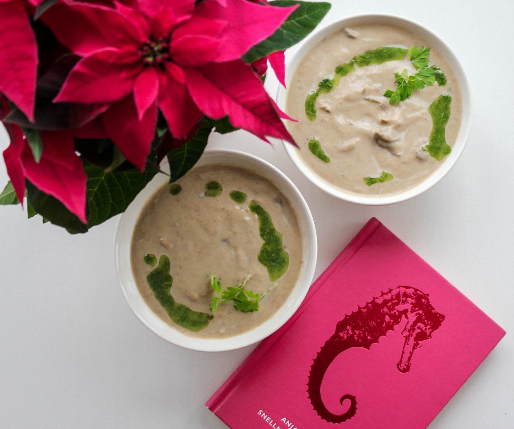 Toisesta satsista tein täyteläisen keiton, johon tuli myös maa-artisokkaa. Mausteiksi puolimakeaa sherryä ja suomalaisen ryytimaan unohdettuja ihanuuksia: kirveliä ja meiramia.