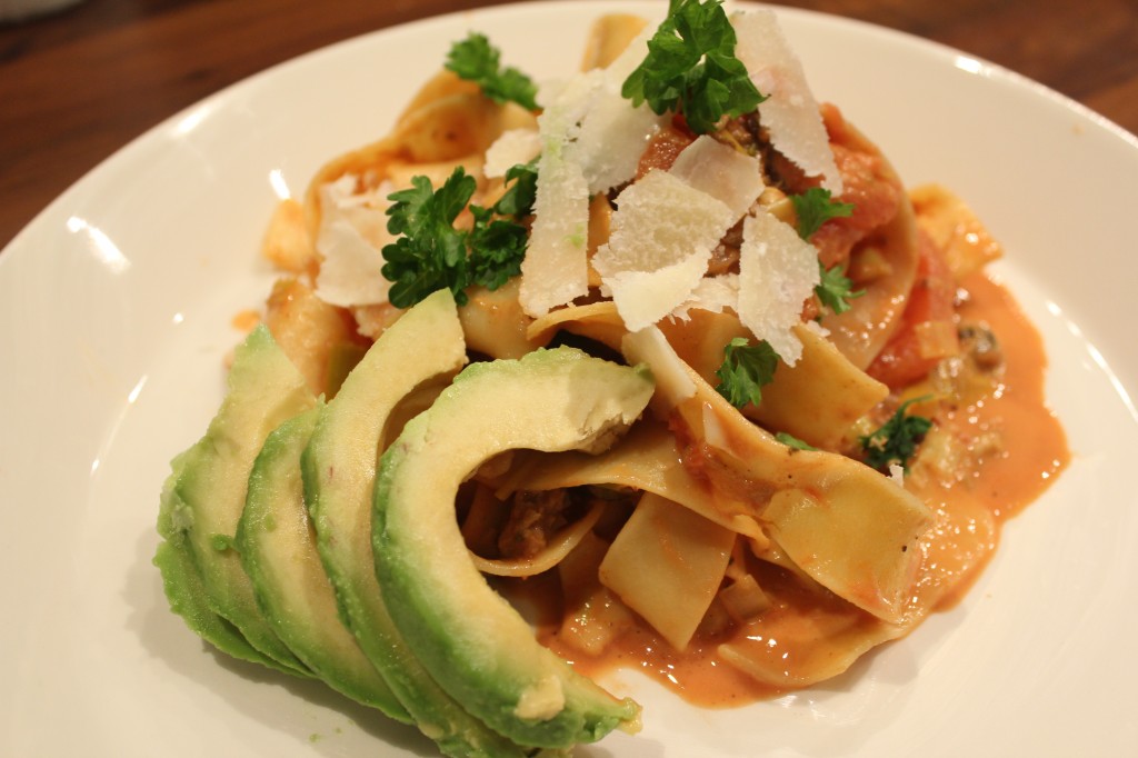 Lisää valmis kastike pastan joukkoon ja sekoita. Tarjoile tuoreen persiljan, avokadon, parmesaanilastujen ja mineraalisen, raikkaan valkoviinin kera. Omnomnom…