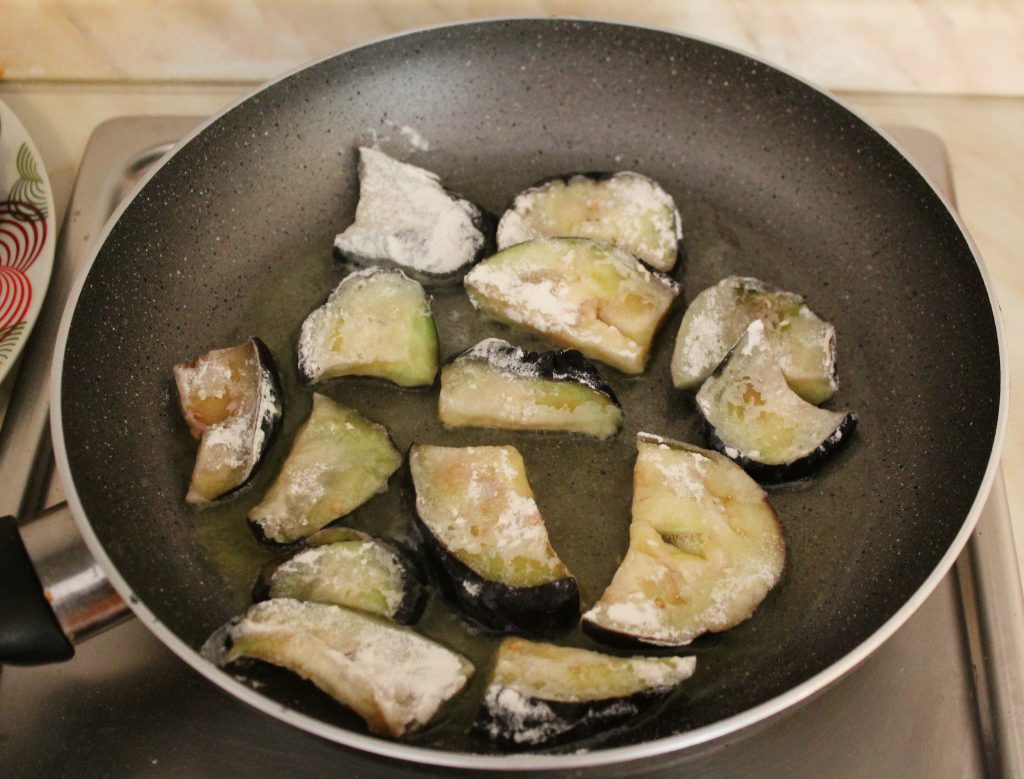 - Pyörittele viipaleet vehnäjauhoissa ja paista pannulla runsaassa oliiviöljyssä. Munakoiso on valmista, kun sen pinta on rapea ja ruskea.